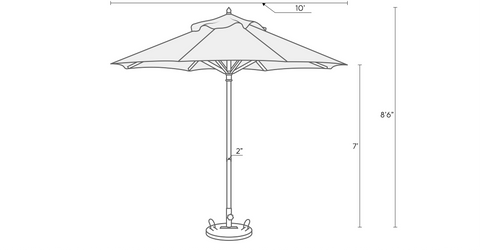 Note: The 10 ft. umbrella will not close properly over a dining table but is ideal for a lounge seating coverage.