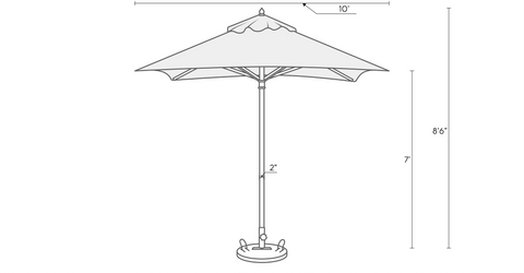 Note: The 10 ft. umbrella will not close properly over a dining table but is ideal for a lounge seating coverage.