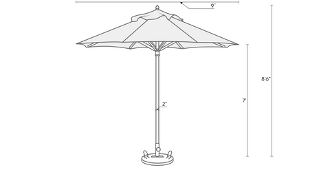 Note: The 9 ft. umbrella is perfect for a dining table or lounge seating coverage.