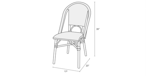 The Avery Outdoor Bistro Chair is inspired from classic European cafés and bistros. The chairs are crafted with gray and white wash all-weather wicker, hand woven around bamboo powder coated aluminum frames.