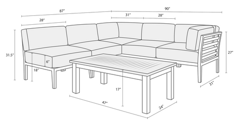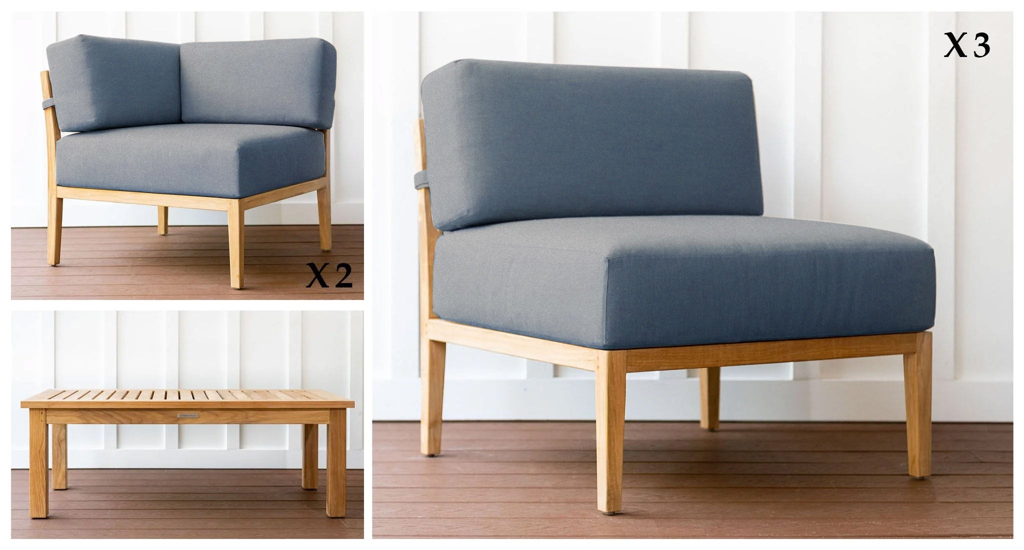 The Bali Collection offers stylish, high quality teak outdoor furniture. Each set is made with FSC certified, Grade A teak and Sunbrella cushions. The Bali Teak Outdoor Sectional includes a 5 piece sectional and matching coffee table
