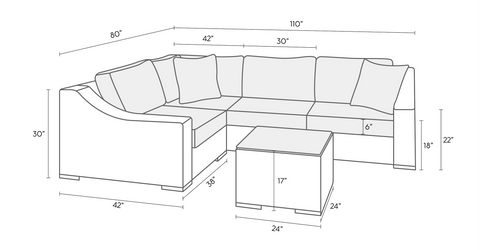 We designed the specifications of this outdoor sectional set to be as versatile as possible, offering many modifications and sizes based on your space and desired layout. Matching pieces include a club chair, ottoman, lounge chair, and coffee table. Additional armless pieces can be added to extend the length on either side.