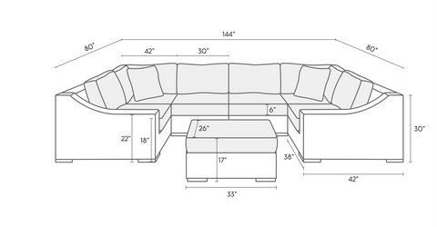 The Corsica boasts a classic look with a driftwood grey colored weave, wide arms and backrests, and deep seating. The Corsica comes in Sunbrella fabric – a shade that meshes with any setting and matches all colors of throw pillows. The Corsica Outdoor U-Shaped Sectional includes a 6 piece sectional and ottoman.