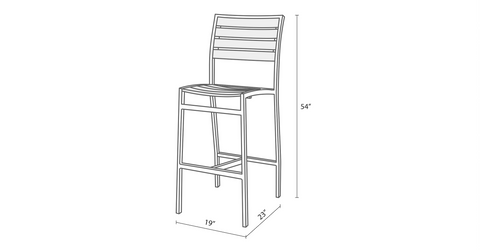 The Mason Outdoor Bar Chair is built for outdoor restaurant and commercial settings. It is constructed with charcoal powder coated aluminum framing and weathered gray synthetic teak slats, which make it virtually maintenance free.
