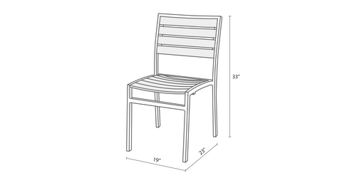 The Mason Outdoor Dining Chair is built for outdoor restaurant and commercial settings. It is constructed with charcoal powder coated aluminum framing and weathered gray synthetic teak slats, which make it virtually maintenance free.