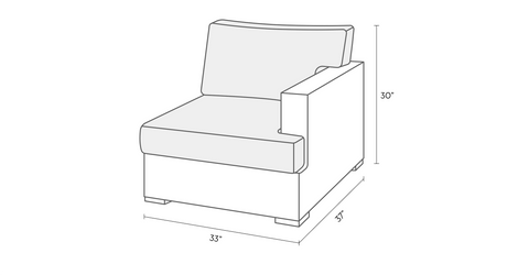 The Salina collection features our rich expresso all weather wicker with sleek arms and backrest. Edge sealed cushions and solid teak feet are a perfect accent to its modern design. Matching pieces include full sectional sets, club chairs, end tables, chaises, and extra armless pieces are all available to add to this outdoor sectional furniture piece. This item includes the sectional piece, bottom cushion and back pillow in Sunbrella fabric.