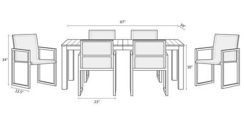 The Pacific Aluminum Dining Set offers outdoor dining for 6 or 8 guests. The table features iron-colored, powder coated aluminum framing topped with aluminum slats. The table is 67”L for 6, and can be extended to 93.5”L for up to 8 guests. The table features an umbrella hole when set up in either size. The set comes with 6 aluminum framed dining chairs with mesh seats and backrests.