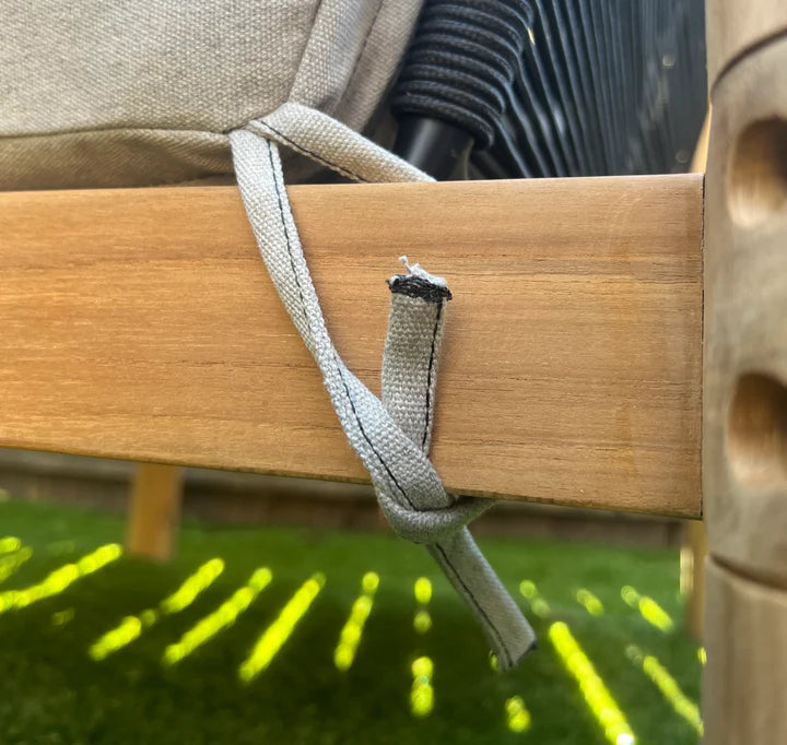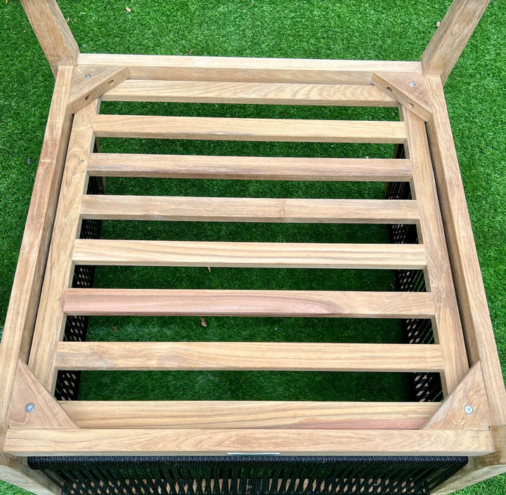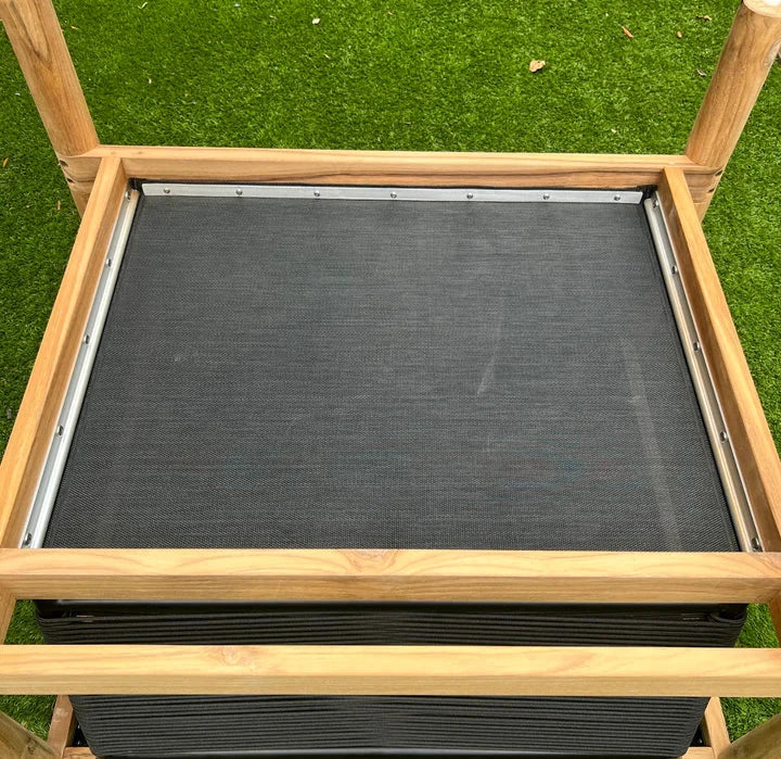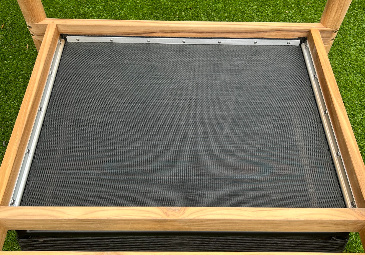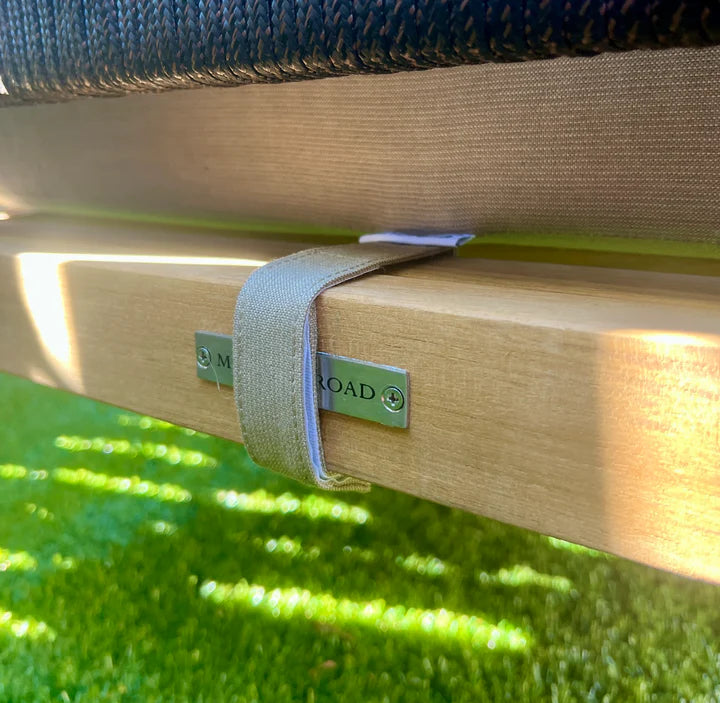 Finally, our frames are another key point of difference between Madbury Road and the competition. Our teak outdoor furniture frames are made with the same solid, grade A teak that you see on the rest of the frames. Many competitors are using mesh or straps underneath the cushions (since they are typically out of site), but this results in a less sturdy product and those materials are prone to sagging over time.