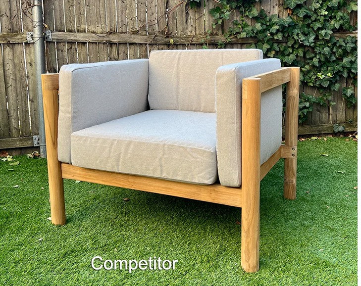 In comparison, some of our competitors offer cushions that are smaller or thinner, making them less comfortable for extended use. The downfall of many outdoor furniture brands is that they use thin cushions that only last a season or two before losing their shape.