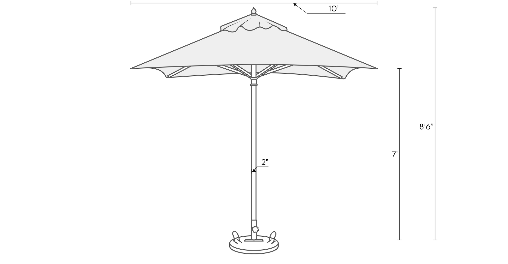 Note: The 10 ft. umbrella will not close properly over a dining table but is ideal for a lounge seating coverage.