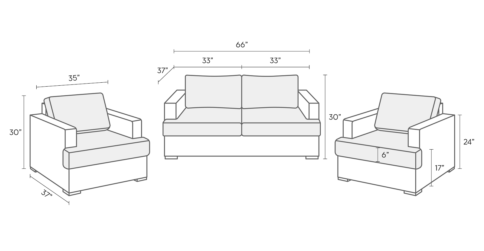 The Amalfi Loveseat & Club Chair Set includes a 2-piece loveseat, two club chairs and all bottom and back cushions. Explore our additional configurations to create the perfect arrangement for your outdoor space.