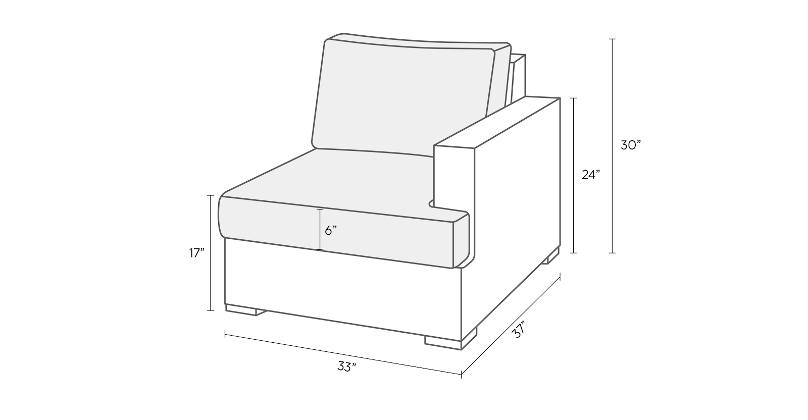 Right Arm Piece - 33″W x 37″D x 30″H