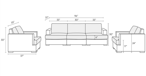 Three Piece Sofa – 96″W x 37″D x 30″H