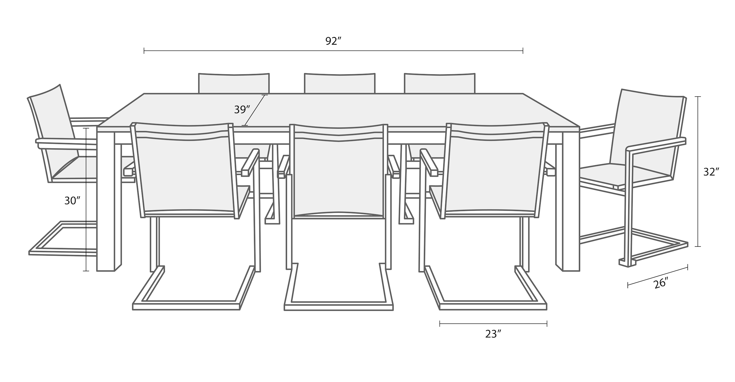 The Bali Outdoor Dining Set for 8 is made with Burmese teak and 304 grade stainless teal. The infinity chairs are a perfect blend of comfort and design. Each chair features armrests topped with teak to match the table top. The seating is made with batyline mesh fabric, making the entire set virtually maintenance free.