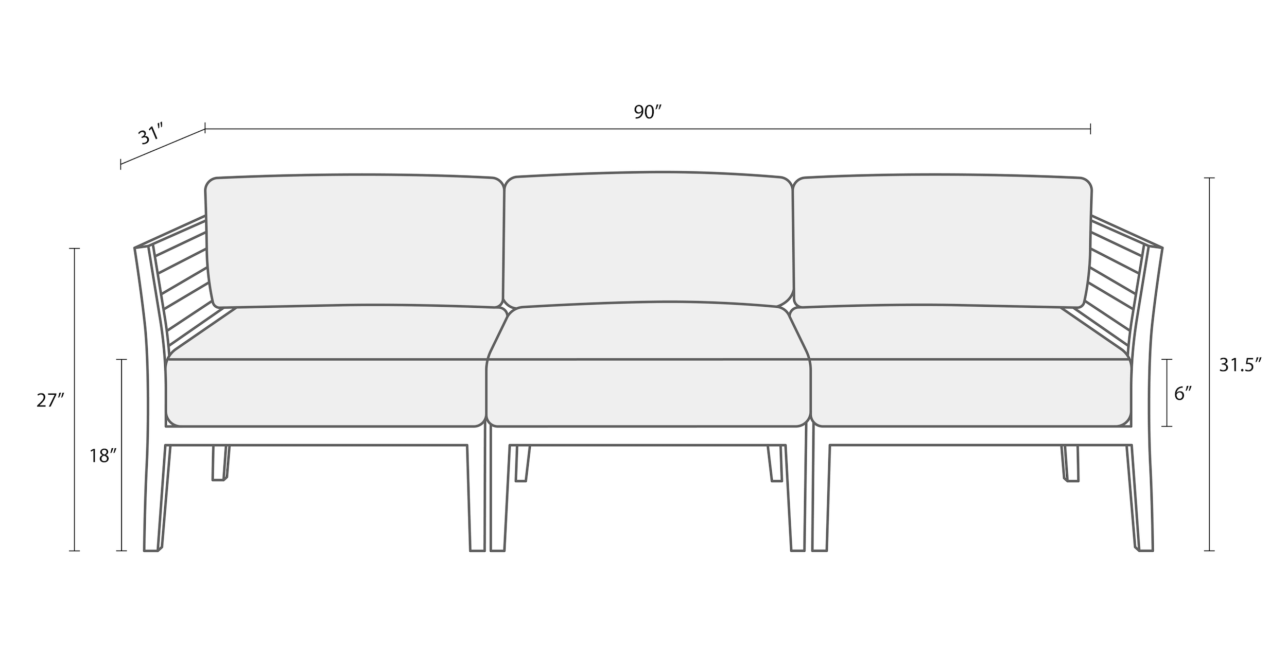 Sofa – 90″L x 31″D x 27″H