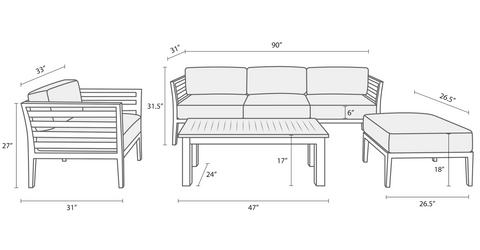 The Bali Collection offers stylish, high quality teak outdoor furniture. Each set is made with FSC certified, Grade A teak and Sunbrella cushions. The Bali Teak Outdoor Sofa Set Includes a three piece sofa, club chair, ottoman, and coffee table.