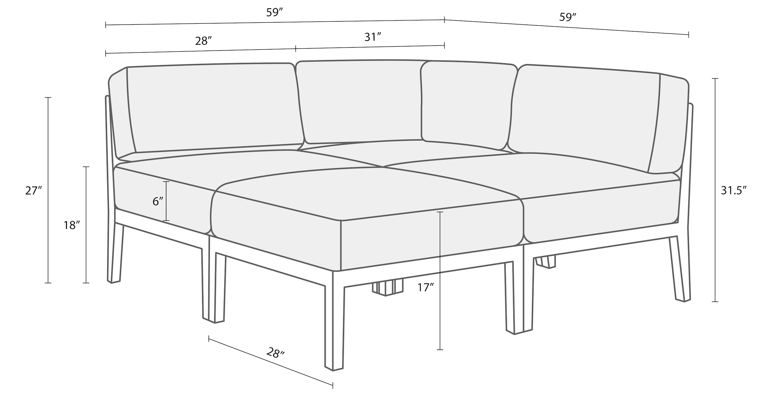 Corner – 31″L x 31″W x 27″H