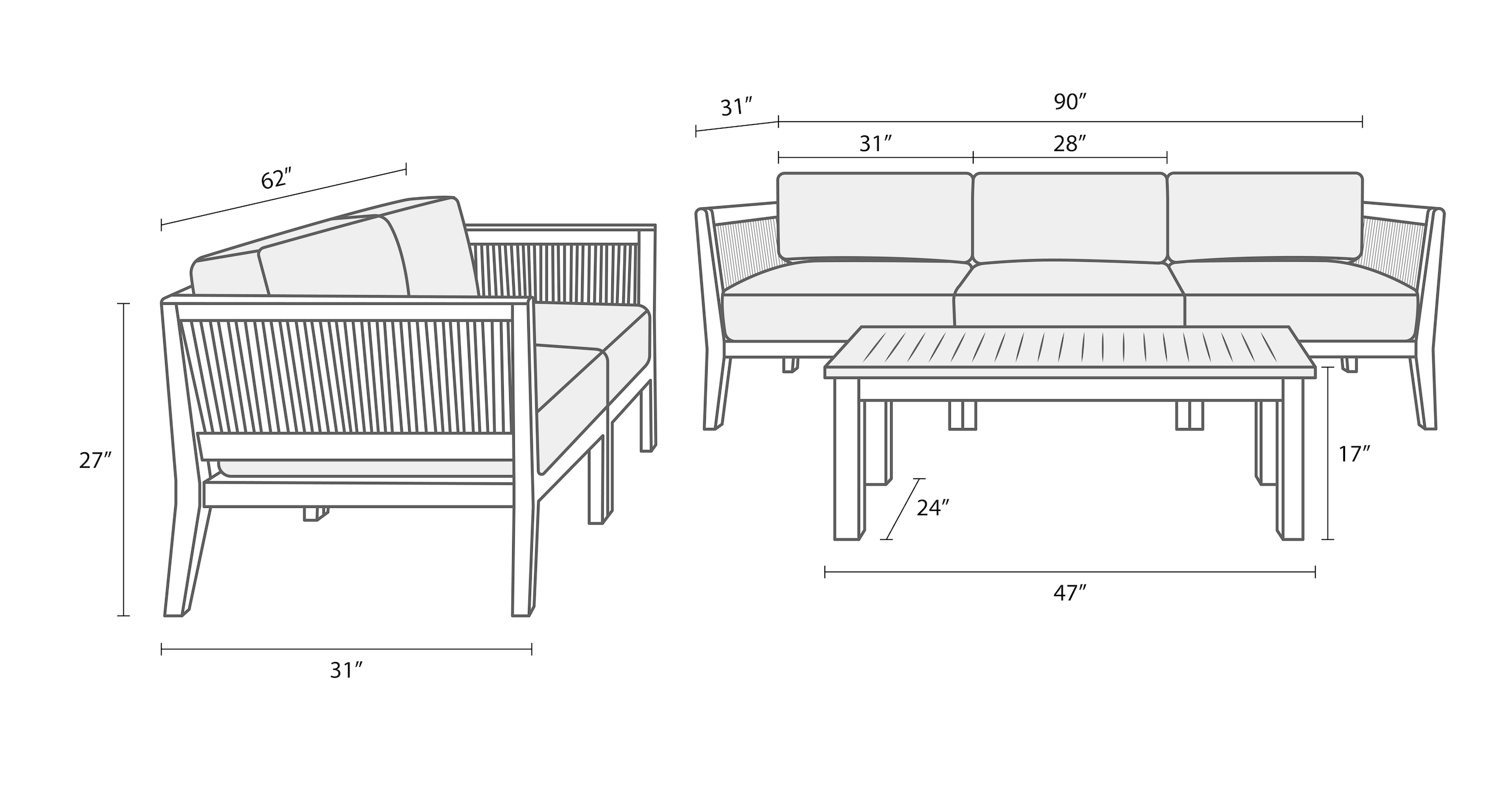 Loveseat – 62″W x 31″D