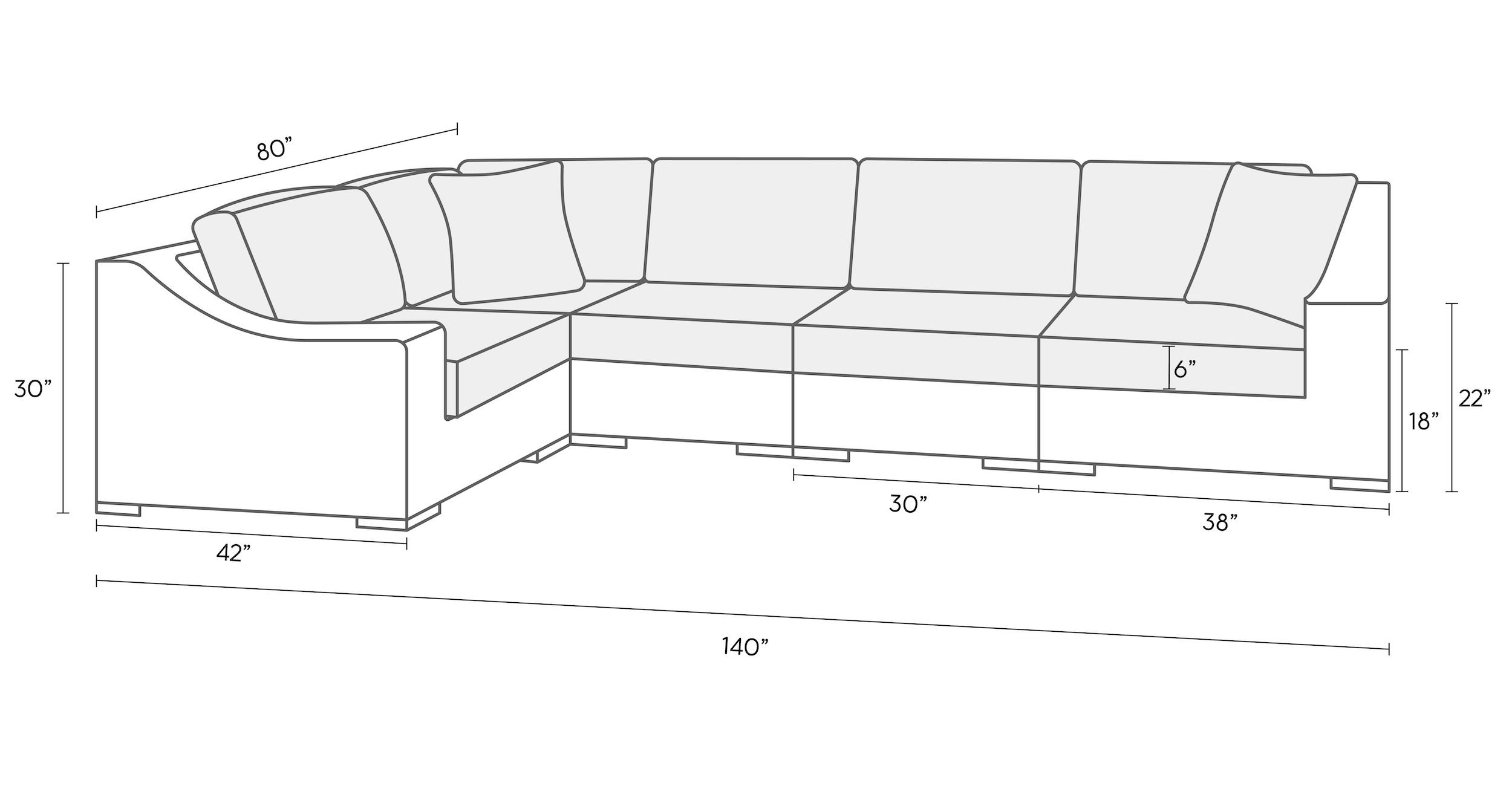 Sectional – 140″W x 80″L x 30″H