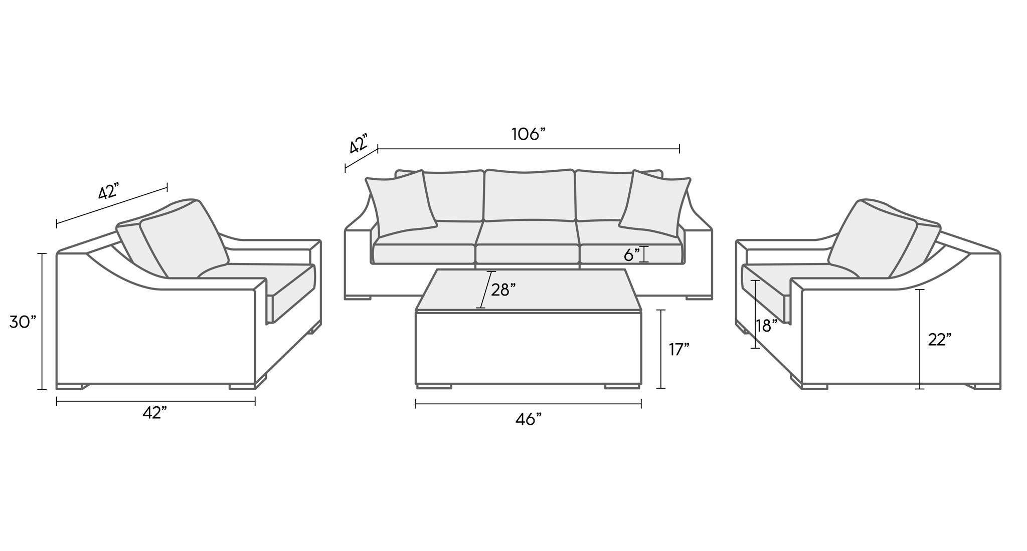 Corsica sofa and club chair set pieces - Sunbrella Cast Slate