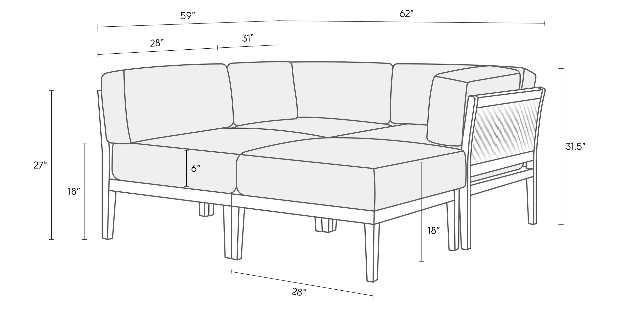Corner – 31″L x 31″W x 27″H
