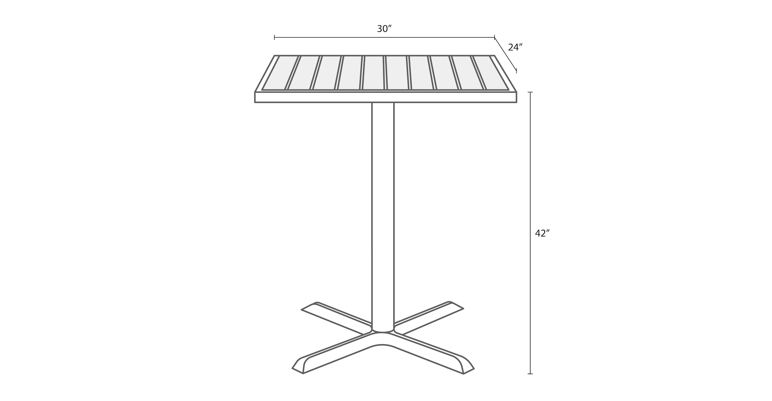 The Mason 2-Top Outdoor Bar Table features weathered gray synthetic teak and charcoal colored powder coated aluminum framing.