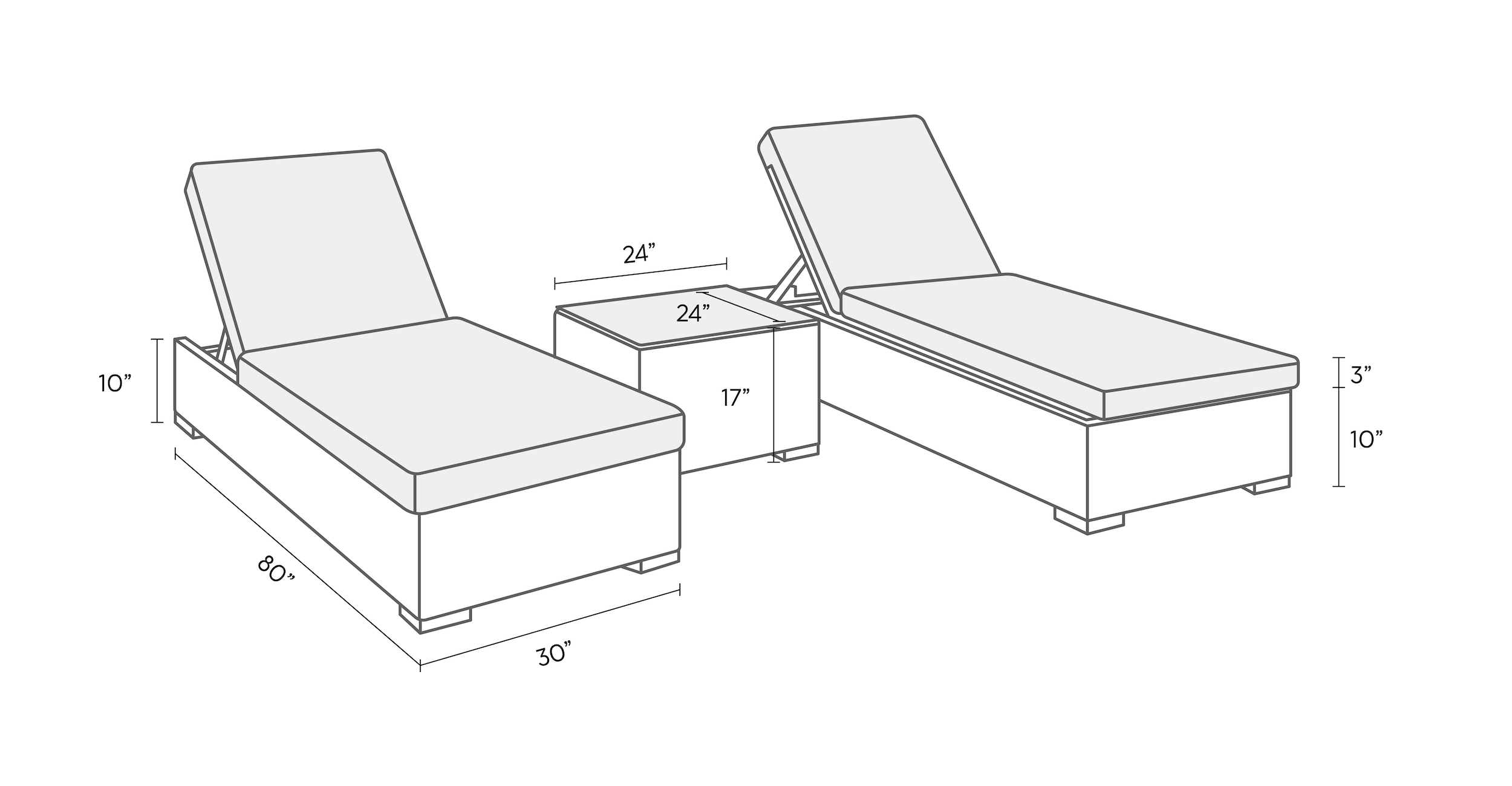 Lounge Chairs – 80”L x 30”W x 10″H