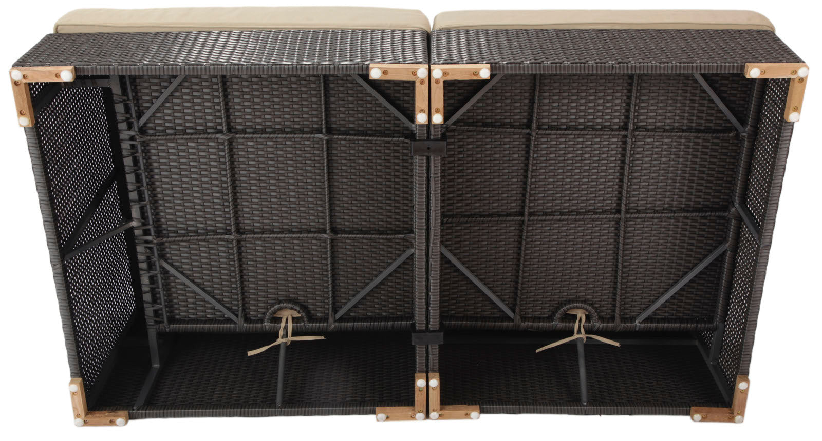 • Bottom cushions are stitched with ties and can be secured to the frames.