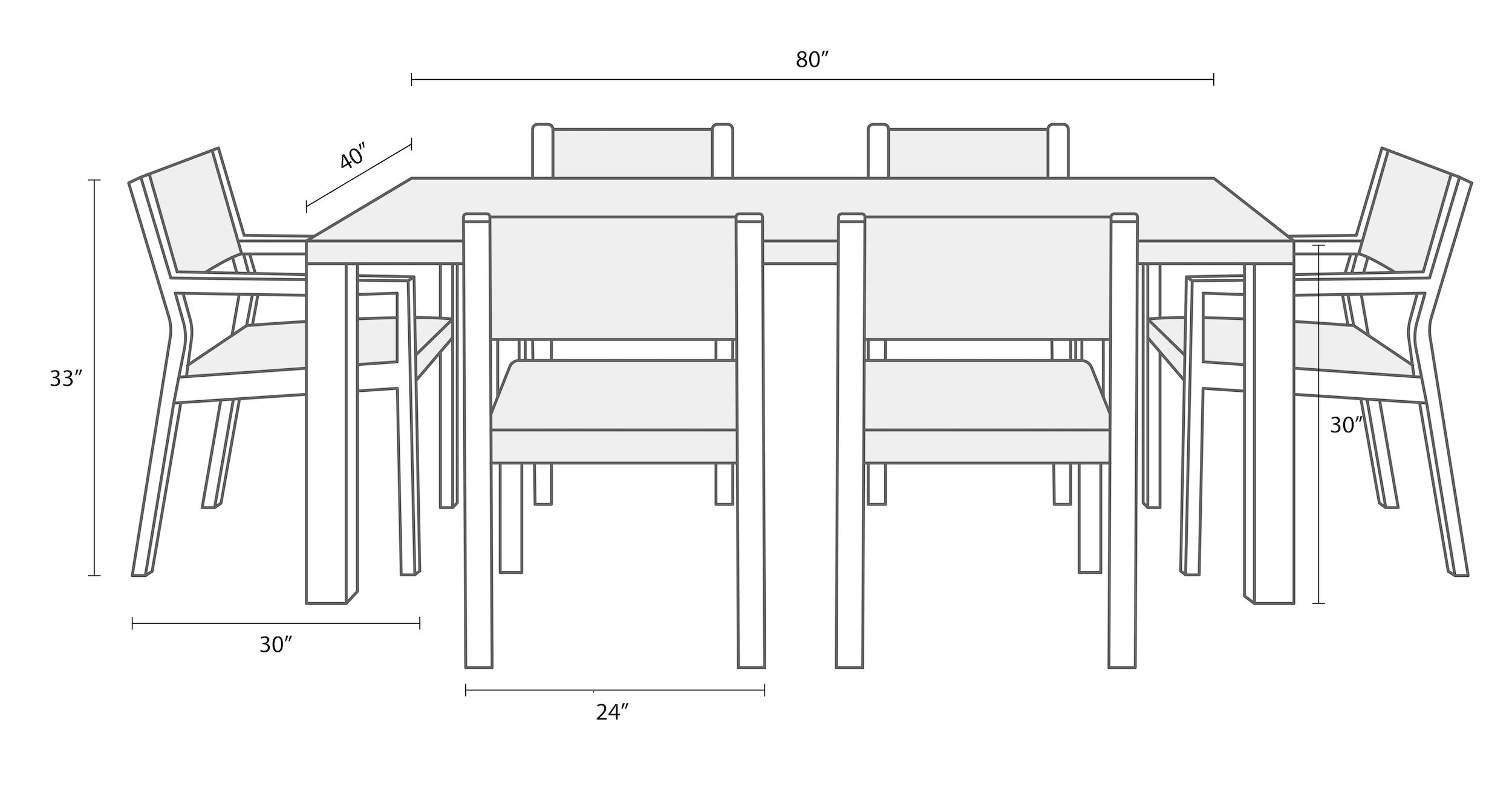 Dining Table for 6 – 80”L x 40”W x 30”H